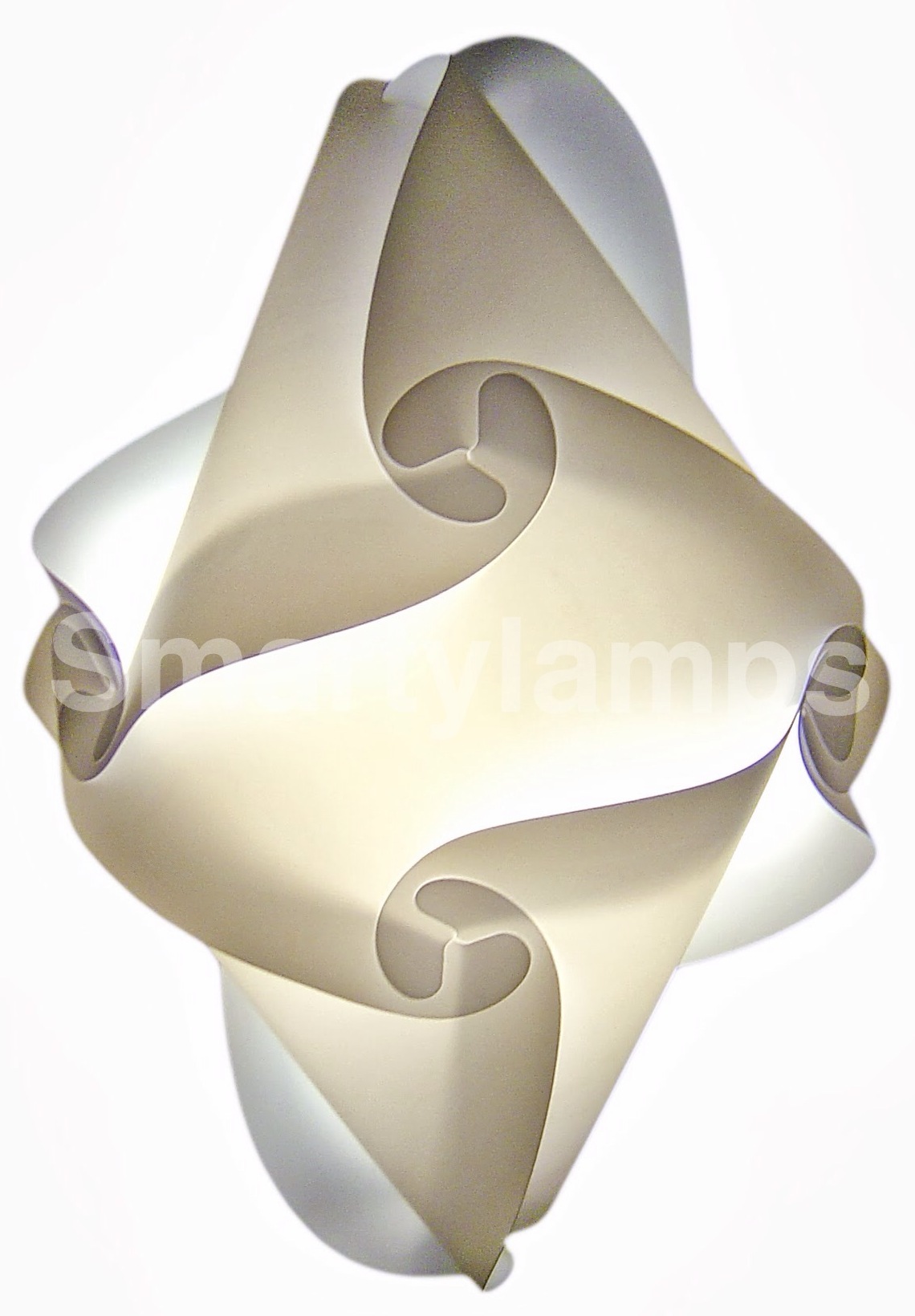 Ready-made (not flatpack) light shade made from 9 identical pieces of white recyclable polypropylene plastic.