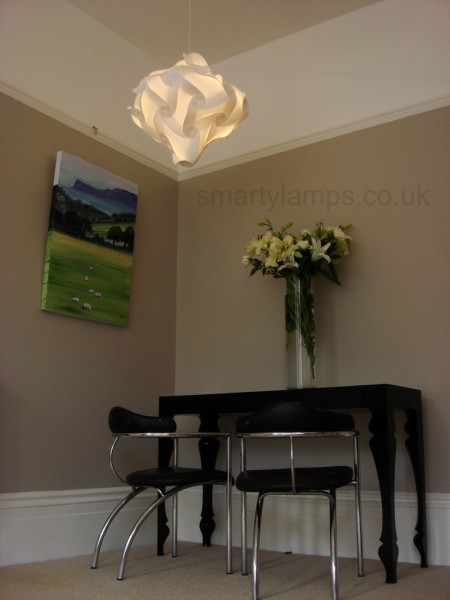 Add a little luxury to any room with the Viveka ceiling pendant light – it’ll look great in the bedroom, living room or hallway. Making lamp shades has never been easier. No electrical work is required, simply unscrew the lamp holder, attach the shade and screw it back on. This unique looking lampshade is an interesting shape, and will add an element of modern luxury to your home. One of the biggest in this style, our large lamp shade is ready-made (not flatpack), and hangs from ceiling pendant cable. Use an energy saving bulb or MAX 60 watt. Made from 32 identical pieces of white polypropylene plastic.